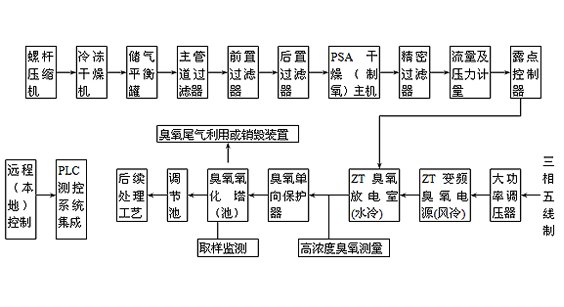 青島中通臭氧科技有限公司的科技人員和國內(nèi)諸多環(huán)保專家通力合作,在石油、化工、制藥、焦化、印染、造紙等領(lǐng)域作了有益嘗試和工程探索?,F(xiàn)將主要大型臭氧裝備工藝予以介紹: