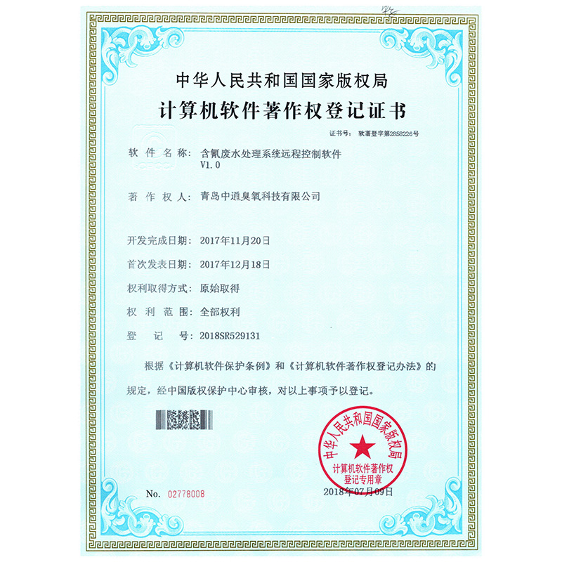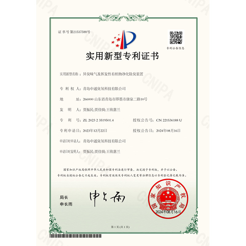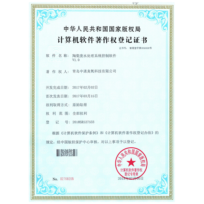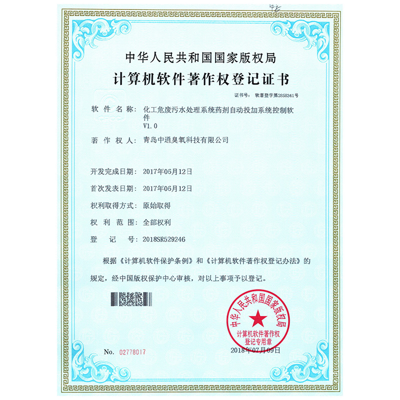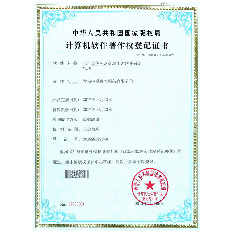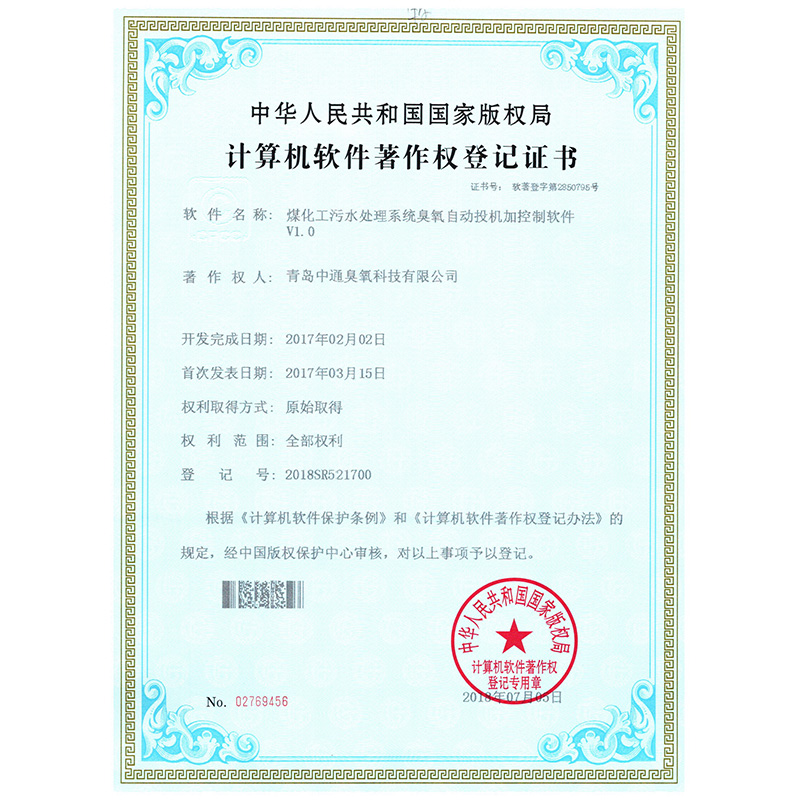 一種大型氧發(fā)生器冷卻水系統(tǒng)冷源回收循環(huán)利用裝置 一種催化氧化臭氧除臭系統(tǒng) 一種難降解工業(yè)廢水的處理工藝及裝置 異臭味氣及揮發(fā)性有機(jī)物凈化除臭裝置 污水廢水的COD降解裝置 一種大型臭氧發(fā)生器冷卻水系統(tǒng)冷源回收循環(huán)利用裝置 一種生活污水資源化利用快速處理裝置 一種具有水循環(huán)冷卻結(jié)構(gòu)的臭氧發(fā)生器 一種染料廢水處理臭氧發(fā)生器成套裝置 一種高級(jí)氧化垃圾滲濾處理用臭氧發(fā)生器 中通軟著 中通軟著 中通軟著 中通軟著 中通軟著 中通軟著 中通軟著 中通軟著 中通軟著 中通軟著 中通軟著 中通軟著 中通軟著